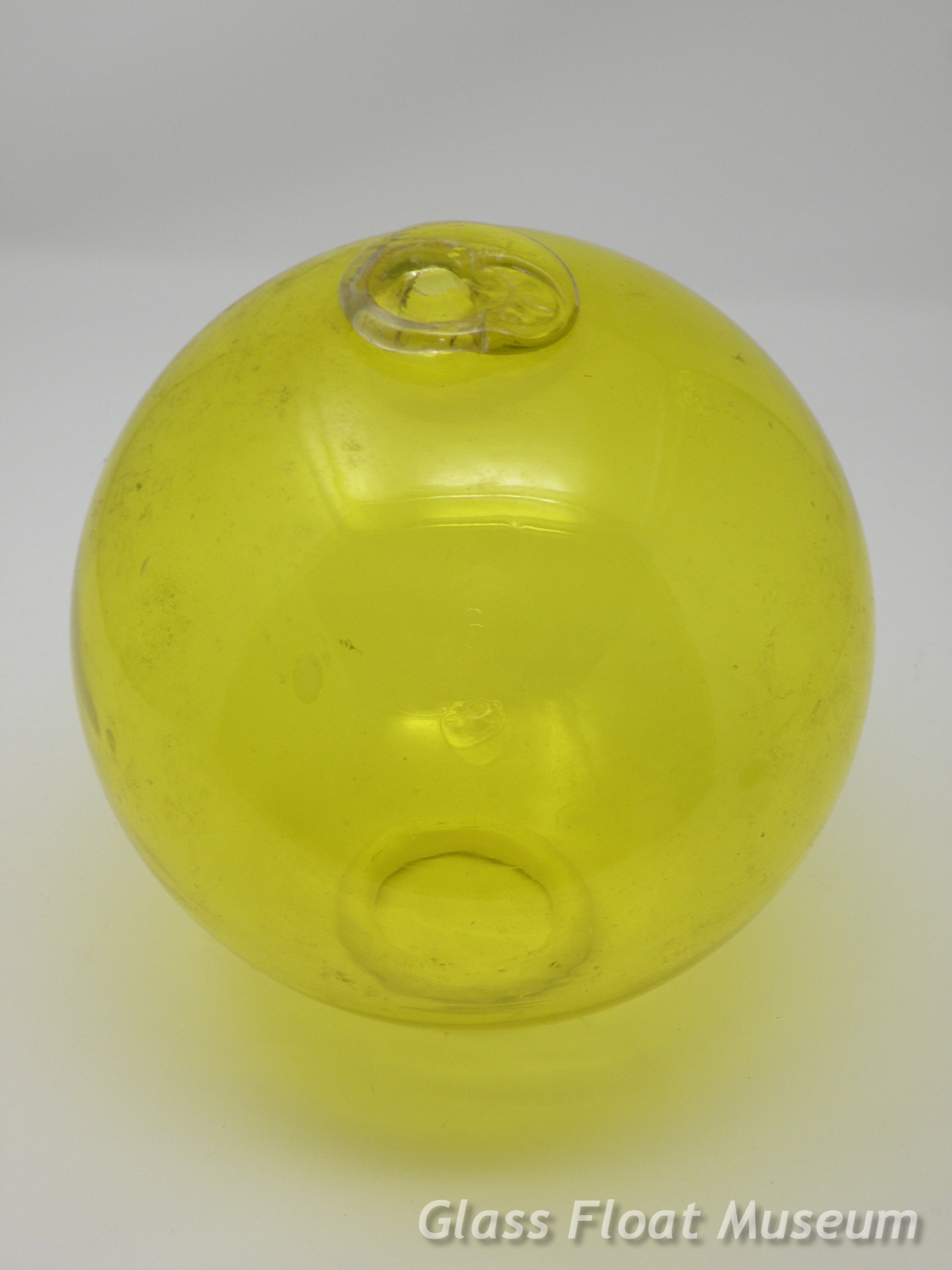 Unusual marked Yellow float. It has mark WP #25 Dai 大 stamped into the glass of the seal button.