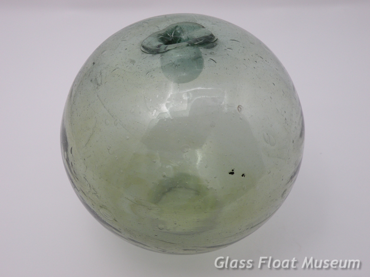 This float has faint amber swirls throughout that gives it an unusual amber cast.